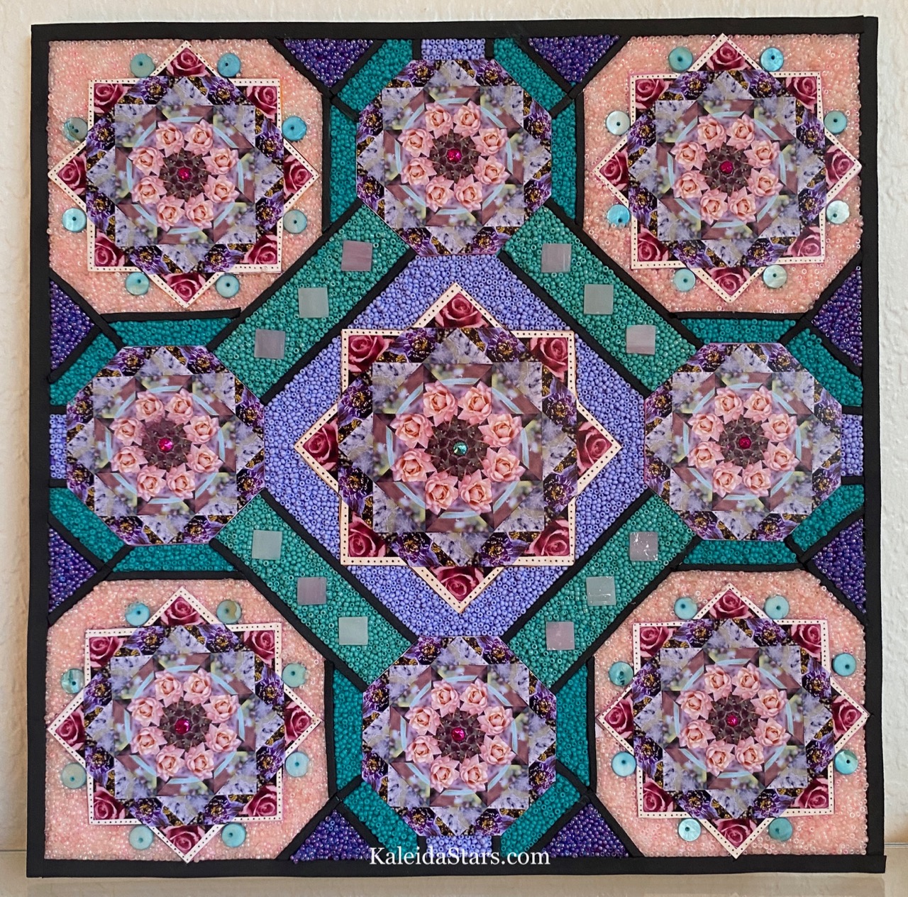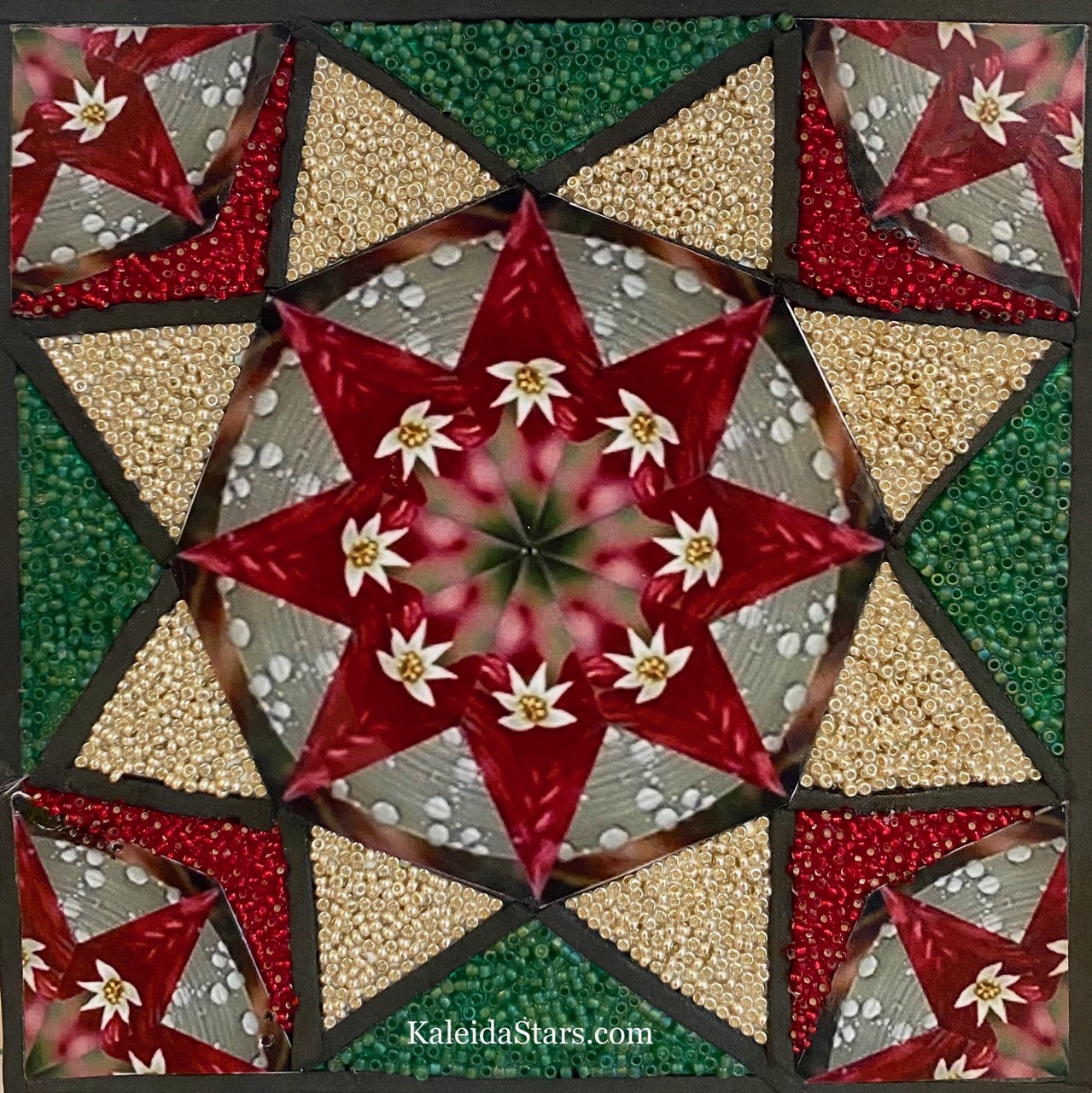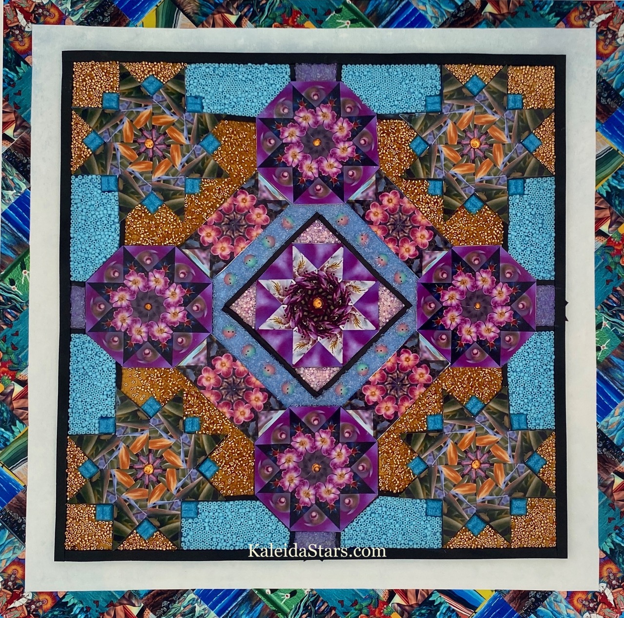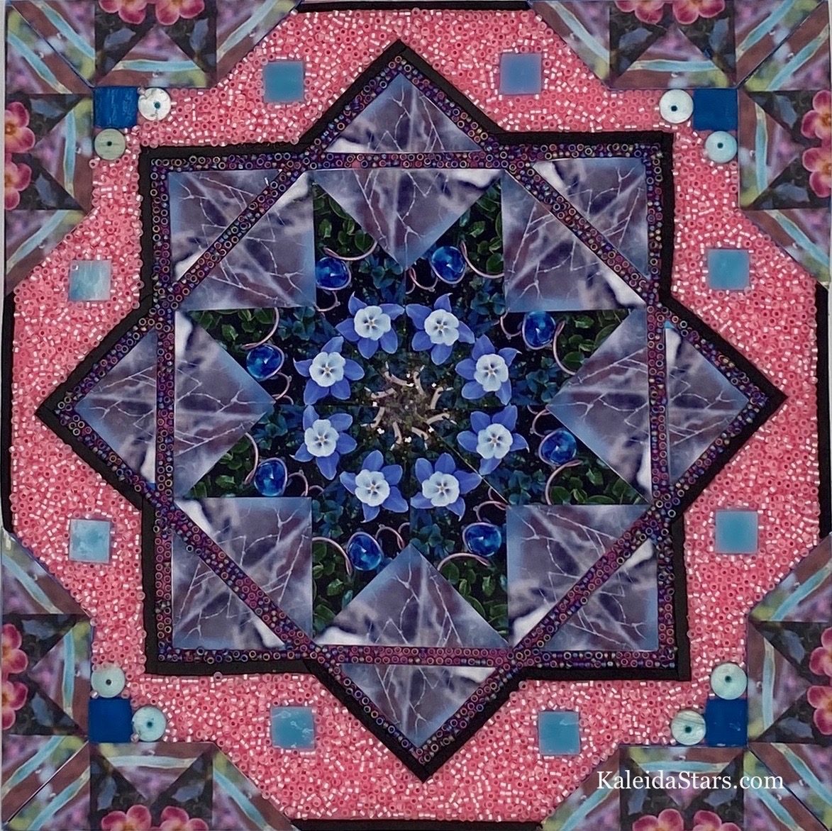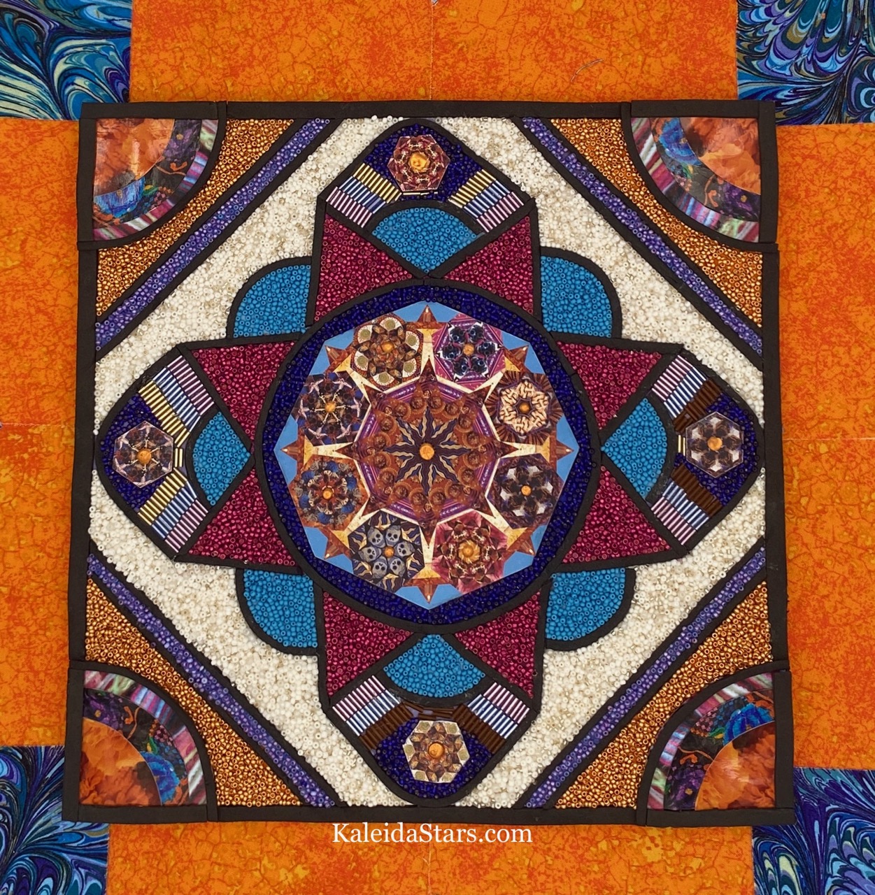 A combination of my love of mandalas, images of flowers, pretty colors, and tiny seed beads with portions of KaleidaStars.