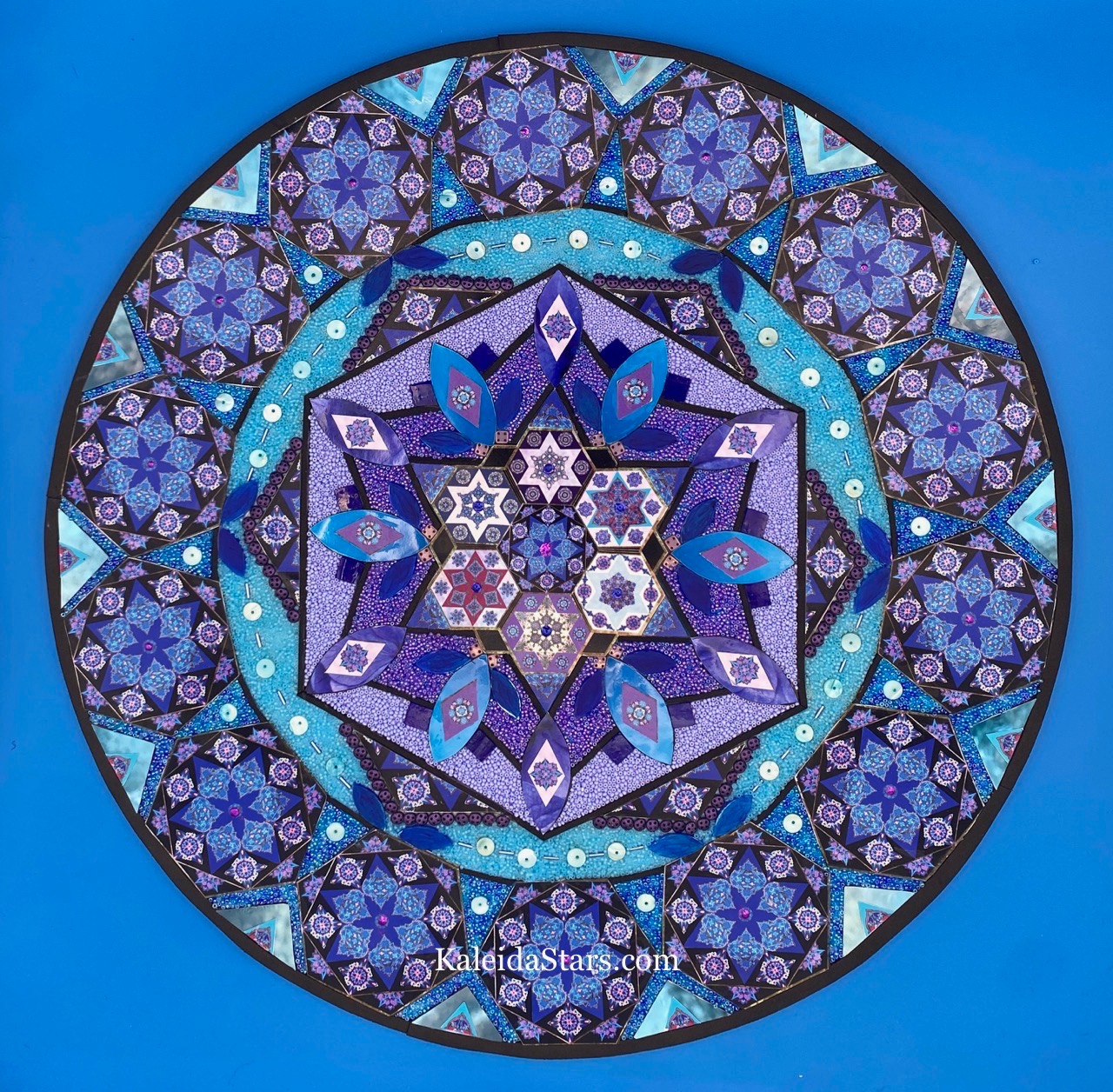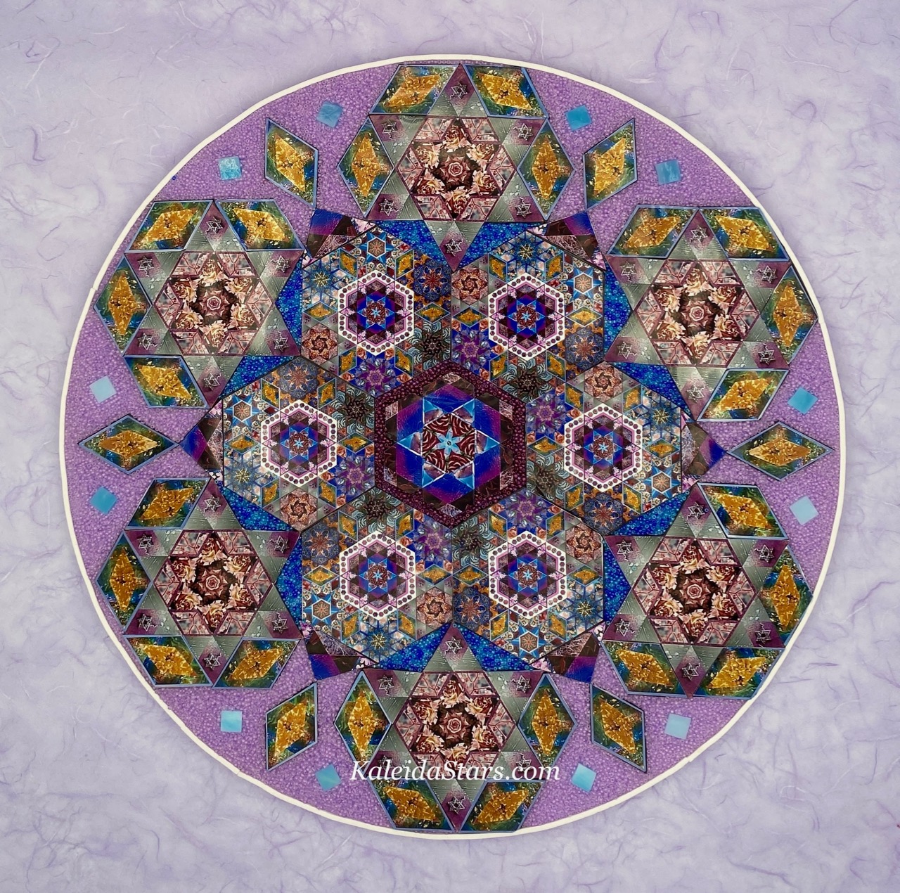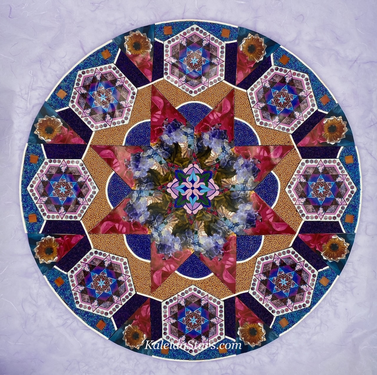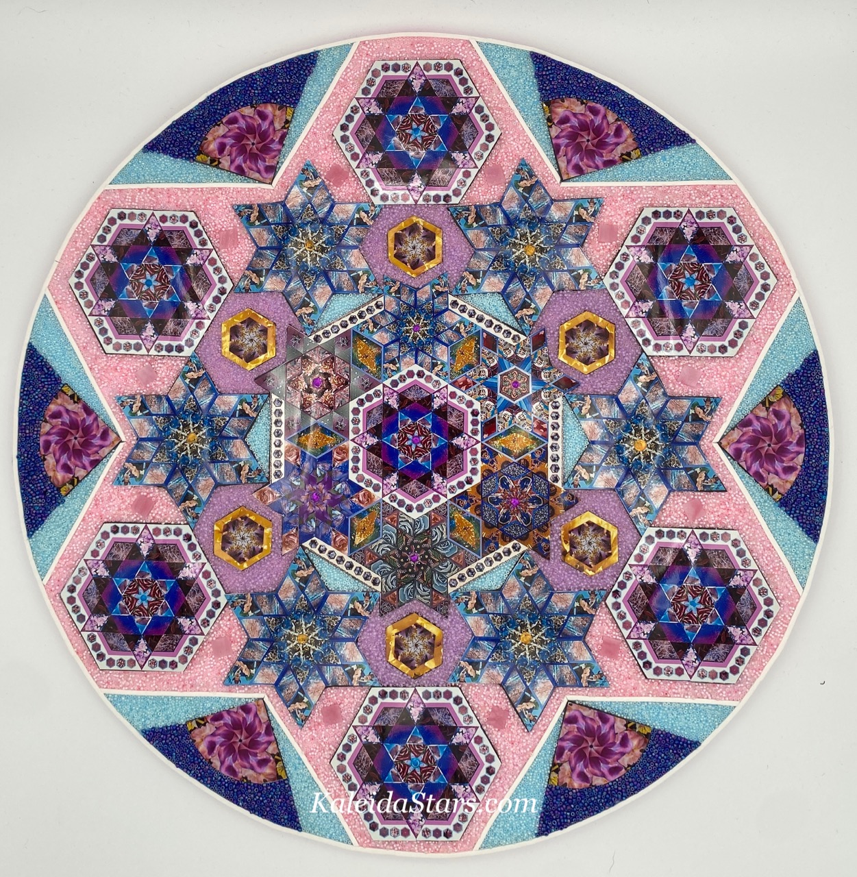 A combination of my love of mandalas, images of flowers, pretty colors, and tiny seed beads with portions of KaleidaStars.