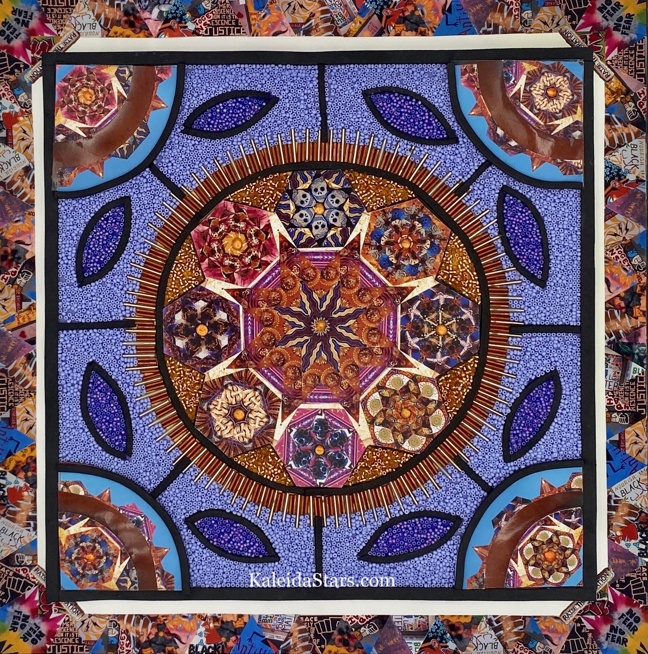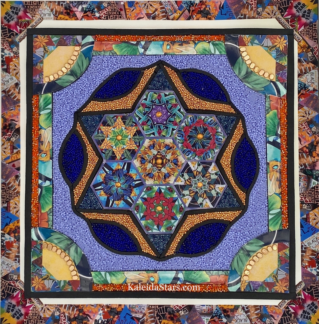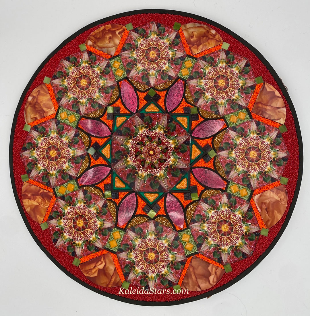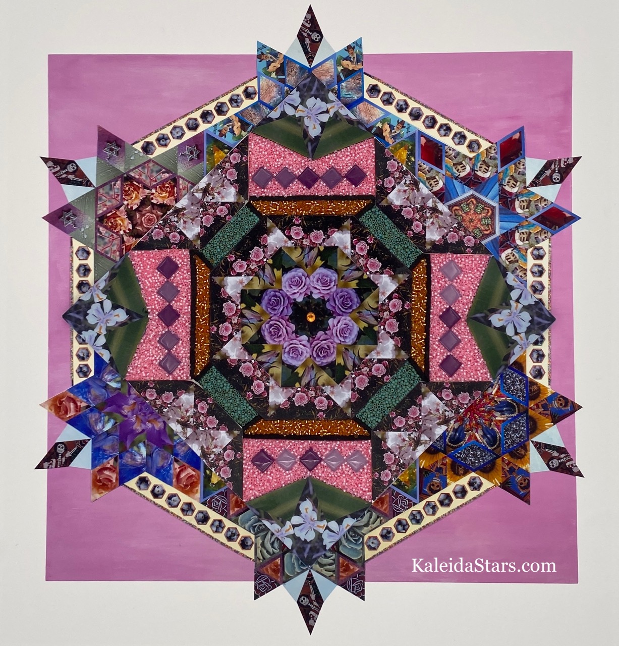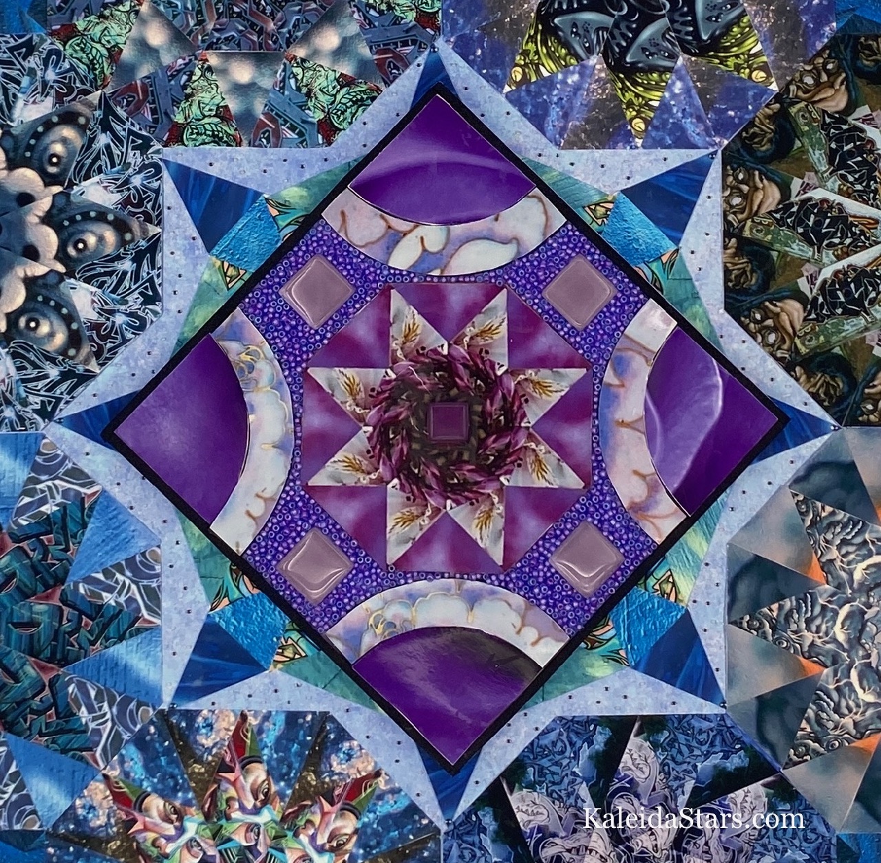 A combination of my love of mandalas, images of flowers, pretty colors, and tiny seed beads with portions of KaleidaStars.