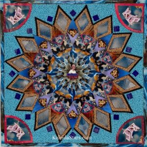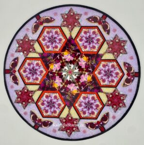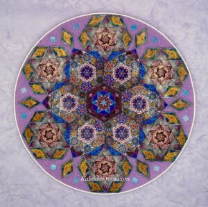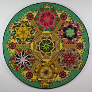A combination of my love of mandalas, images of flowers, pretty colors, and tiny seed beads with portions of KaleidaStars.